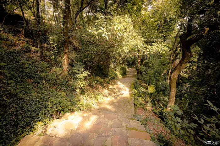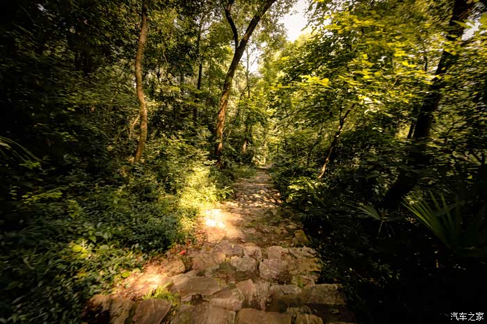 夏日的景区里没什么人,阳光透过树叶间洒下来,有种非常幽静的感觉。