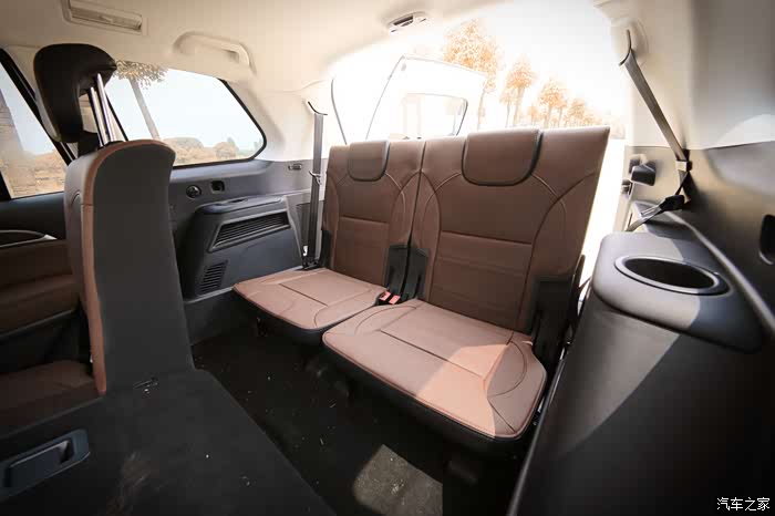 导致尾箱小的罪魁祸首就是这个,第三排座椅。他很少用第三排座椅,所以第二排的座椅调得比较靠后,使第三排的乘坐空间看上去很小。当时我们把第二排座椅调到差不多一样位置的时候,还是H9的第三排空间会稍大一点点。尾箱换第三排作为空间这种交换我觉得是值得的啊,行李可以放在车顶,人可不行。