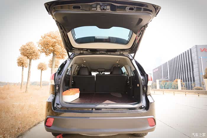 尾门的开启方式,汉兰达则是常见的掀背尾门,而我的H9则是侧开门,这样的好处是大件物品拿取方便,而且尾门左侧原厂配备一套工具箱,应急使用很有帮助。更重要的是带妹子出去玩的时候侧开门显得比较优雅。