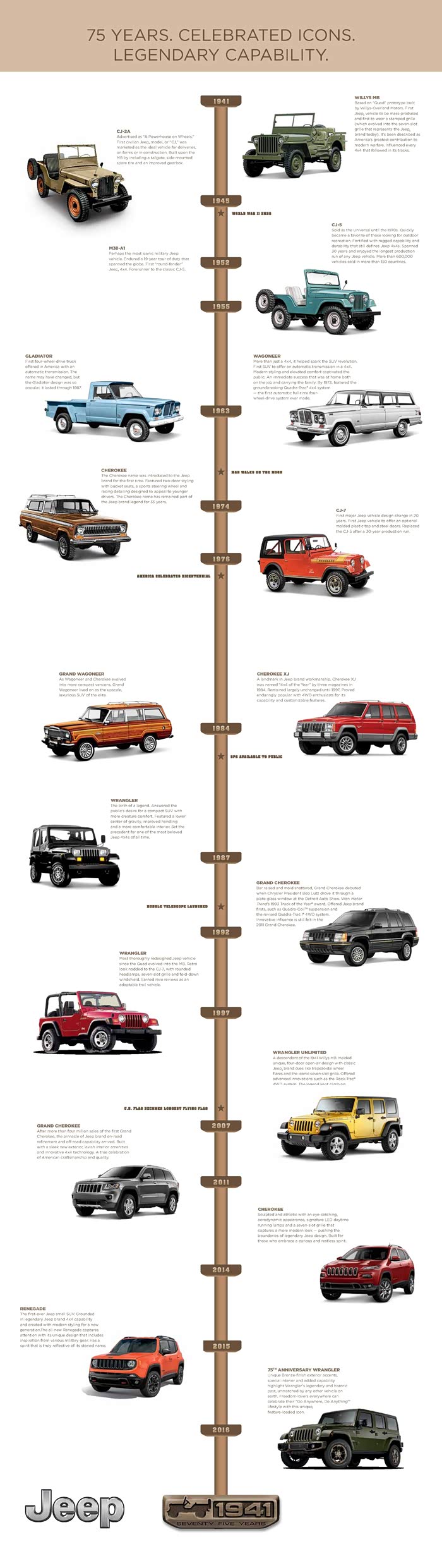 Jeep威利斯是Jeep牧马人鼻祖,牧马人JK、JL车型中都有威利斯版本。在此前的车型中,还有Jeep牧马人1941特别版。目前Jeep在美国老家,几乎所有车型都有Jeep 80周年纪念版车型在售。