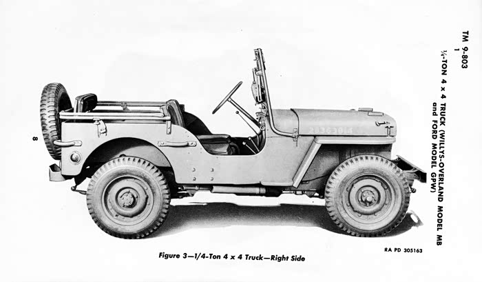 1940年7月,美国军方邀请135家制造商竞标生产“light reconnaissance vehicle”来替代摩托车和福特T型车,要求如下:轴距小于75英寸、车高低于36英寸、承重600磅、发动机在50英里时速下能平稳可靠运转、四轮驱动、双速分动箱、风挡可拆、三座、有照明和防空灯、总重1300磅以下。