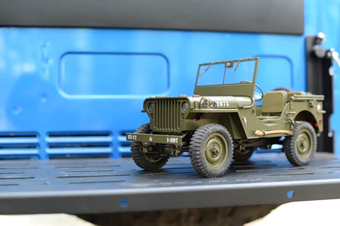 3 定位:仿真程度高、细节还原度高,比如硬桥、板簧、越野轮胎、单侧后视镜、方向联动、软顶支架、油箱、工具、拖钩等。虽是RC动态模型,但可PK静态级模型,有点两边通吃的意思;