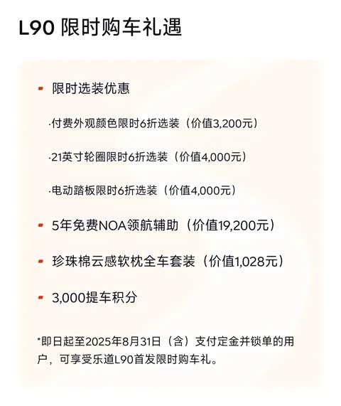 乐道L90六座版定价(8月1日开启交付)