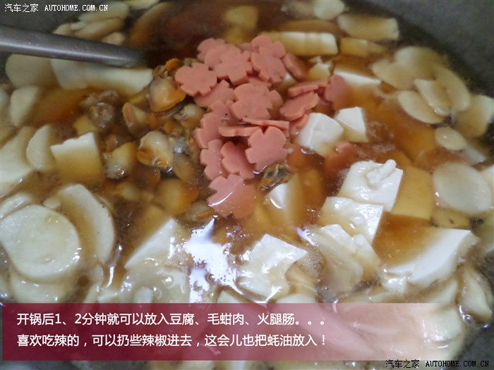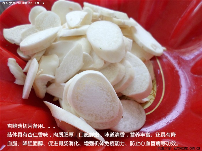 一切准备妥当,就开始开火。。。锅内搁适量食用油,待油温稍热后,放入杏鲍菇翻炒几下,加适量水(水同样要一次加够),烧开锅1、2分钟,就可以放入其它材料。。。这个比较简单,且不失美味