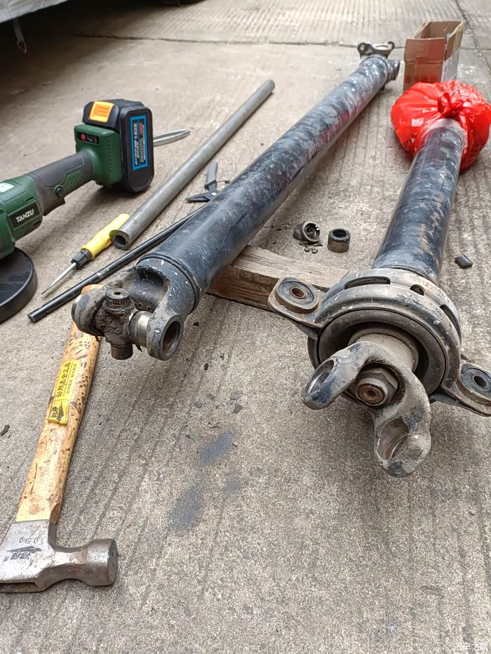 总结:我这顿操作之后,其实很不建议自己修这个东西,宁可买条副厂的,PDD是不到四百块。首先,很多部位都是靠蛮力的,敲敲打打,传动轴的一些部位刚性可能没有原来的好了。第二个,十字轴装好以后其实左右都还有一点点冗余空间,也就是说即便把卡簧装上了,也有可能存在偏左或者偏右一点点,是会影响动平衡的,而且肉眼可能无法看出来,尤其是跑高速的时候比较要命。第三是工具问题,电扳手和切割工具必须要有,否则根本没办法拆,还有卡簧钳要买一个,用完就没其他用了,拆后牙包连接的部位需要两个16号的工具,其中一个必须是开口扳手,否则旁边有阻挡,套筒或者梅花扳手套不进去,但其实开口扳手平时很不实用,基本这里用一次以后就吃灰了,我拆到一半又只能出去实体店买,浪费了八块钱。整个过程工具不齐全的话不建议自己搞这个东西,而且工作量挺重的。。。