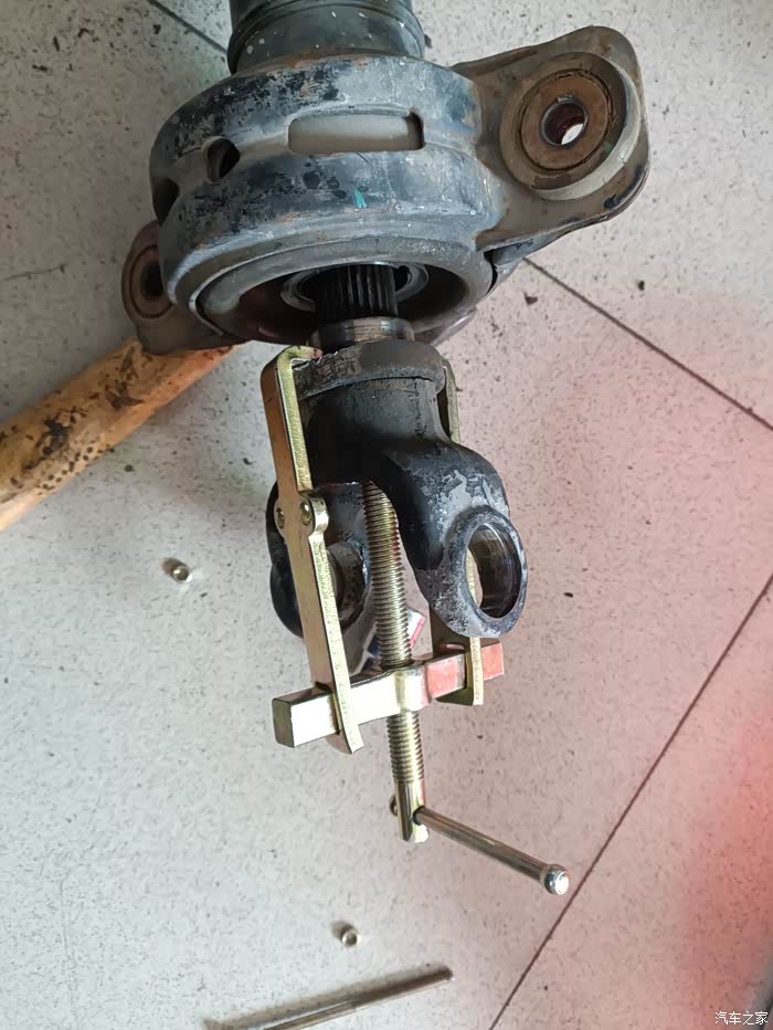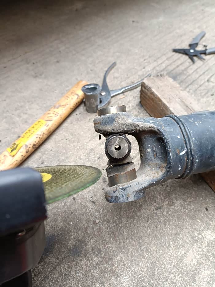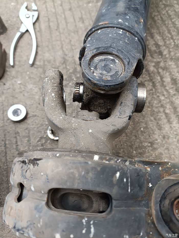 安装十字轴那部分忘了拍照,有一个很重要的地方需要注意。十字轴两头的帽子先敲进去槽里,敲一点点就可以了,然后把轴心放进去再继续敲,千万别急,敲多了轴心就放不进去,再敲出来这个轴承就废了。我本来买了三个十字轴,打算全部换的,但就因为心急,装这里的时候轴帽敲多了,导致十字轴心放不进去,只能又敲出来,废了,只能又拿个新的重新来过。。。所以这次只换了一个十字轴,剩下的两个部位检查了下没发现异常,就没换,因为刚才的操作失误,配件也不够了。