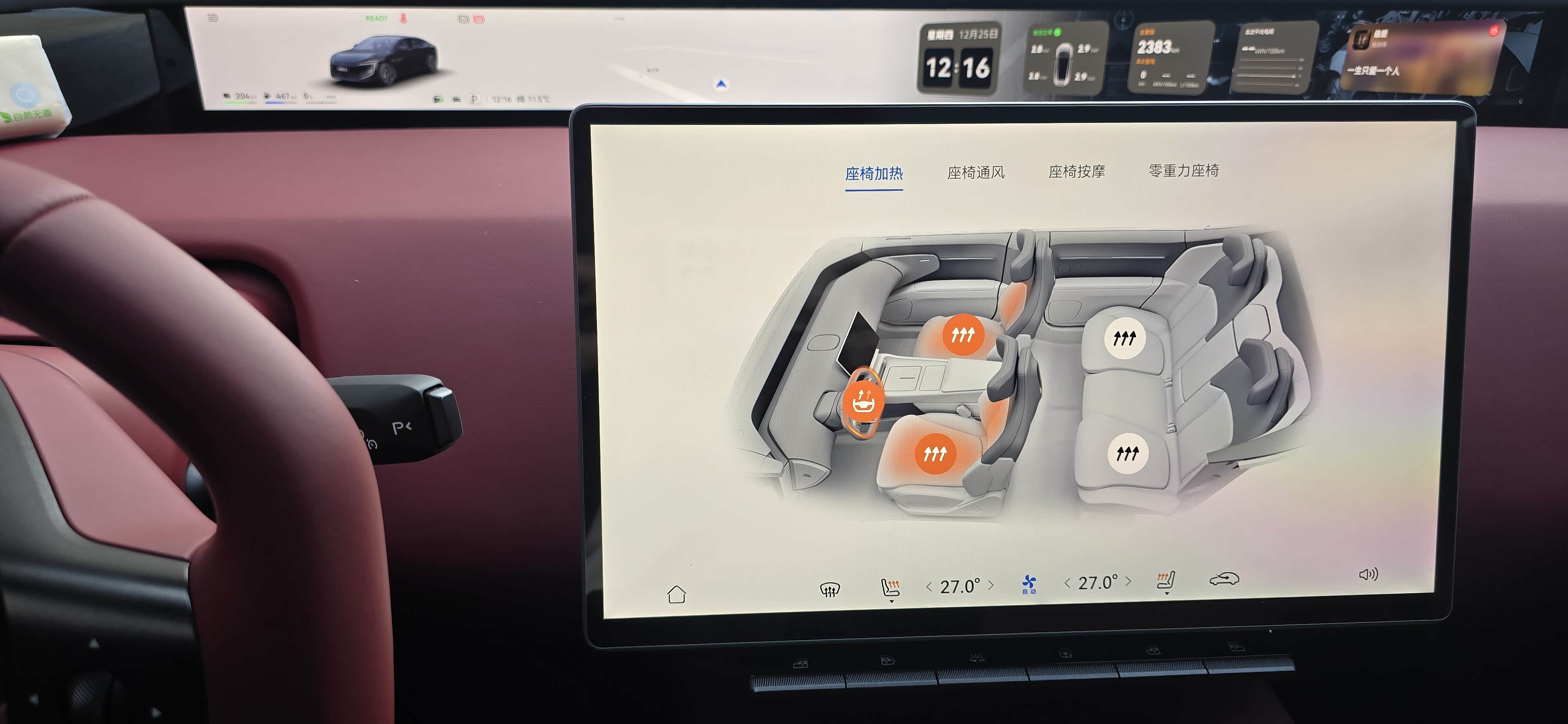 除了方向盘加热,座椅加热也是必须的,像我女朋友就很喜欢,天冷了上车前提前打开,这样不仅车内是热的,座椅也是热的,坐在车里就很舒服。当然了,除了座椅加热以外,还有很多功能,座椅通风、座椅按摩等等,能安排的阿维塔12都给安排上了,可以说是性价比直接拉满了。