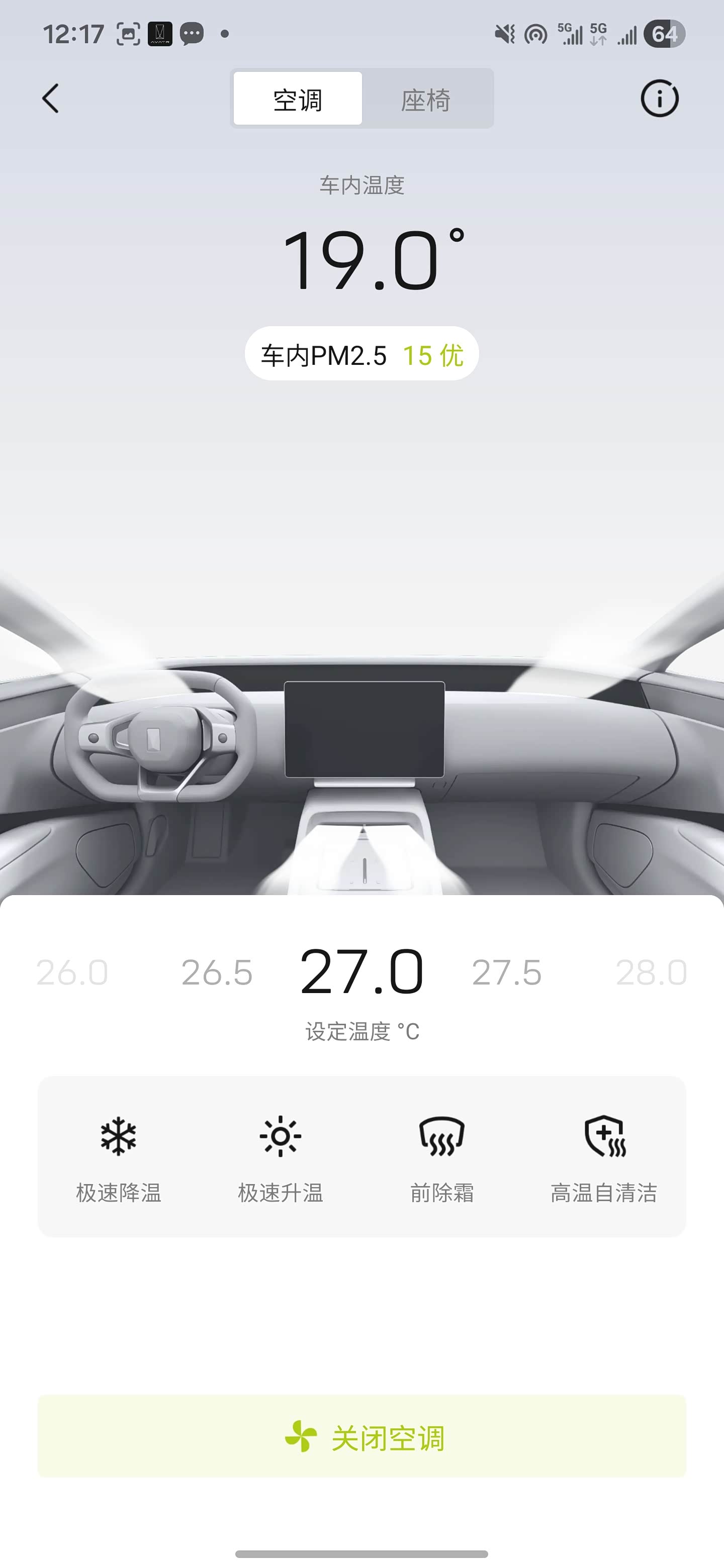 车内除了可以快速地达到我想要的温度,还有空调清洁的功能,可以看到车内PM2.5的值,直接把人性化拉满了。