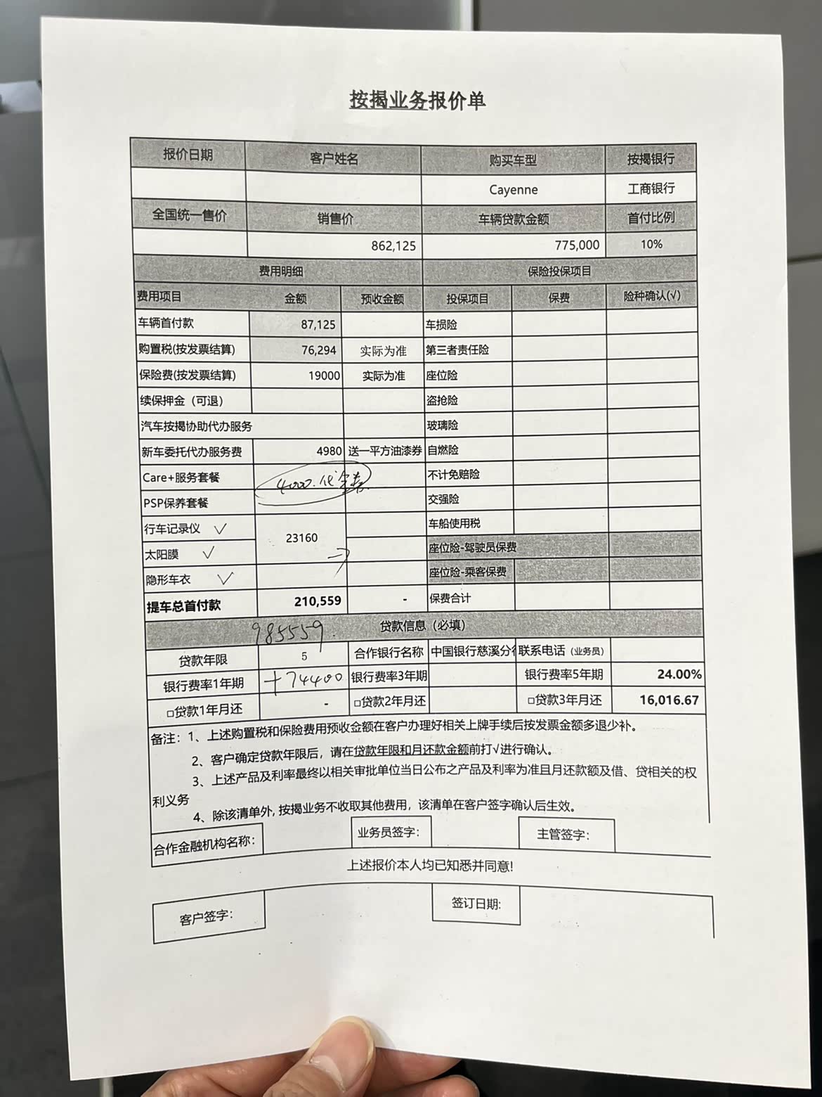 现款没我想要的配置,请问如果订新车,配置可能30万+,一般落地多少钱左右?做贷款,买卡宴coupe