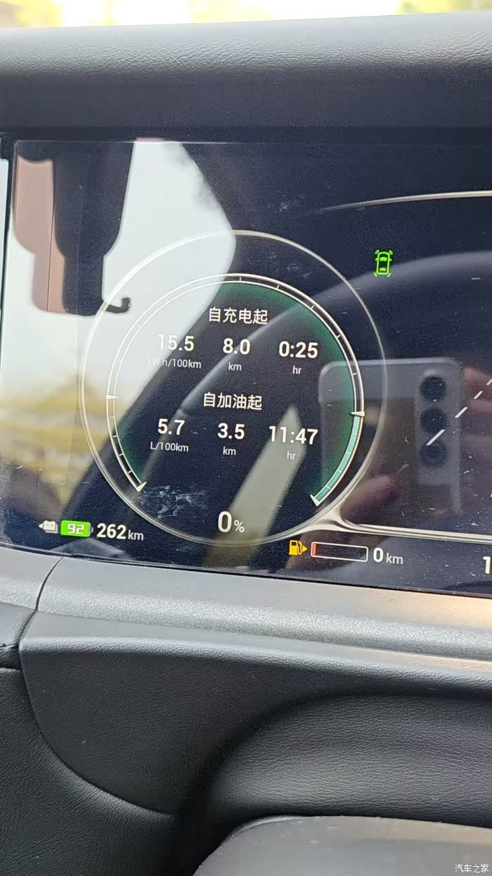 前段时间跑了次长途,从广东到重庆,来回有大概有4000km,顺便测了一下这台车的满油满电续航能力,全程定速110油耗表现为5.7升,一箱油大概可以跑八九百公里,记住一定要选燃油优先模式,这样的话会比保电模式降低2L左右的油耗。