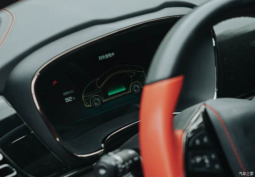 车身外的放电枪,是最大支持3.3KW,并且无论在车辆启动还是断电的状态,都可以实现对外放电。
