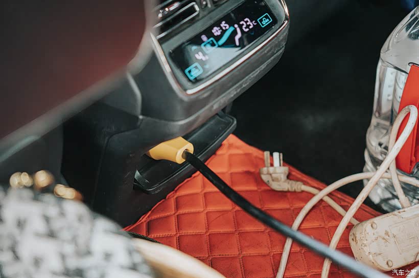 汉EV 的后排也有放电口,但是这个放点口只有在车辆启动后才会有放电功能,并且支持2KW的放电功率的。