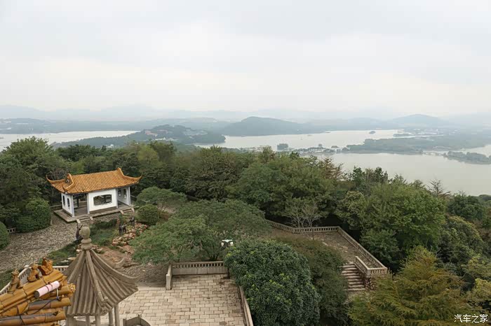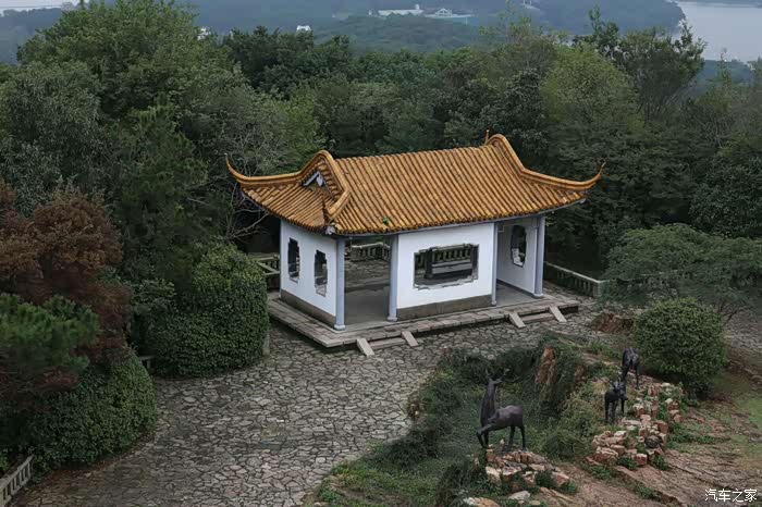 鼋头渚景区里面的一座山--鹿顶山,这座山的名字的由来还有一个美丽的传说呢。相传此山本为仙鹿,是南极仙翁的坐骑,因为触犯了天规,被仙翁一掌打下云头。这鹿下凡时,看中了水草丰美的太湖,便在湖边化成了美丽的山峰--鹿顶山。不过由于仙翁在盛怒之下用力过猛,将鹿头拍出了五指凹痕,远看成了六个小包(也就是我们看到的六个山顶)。由于无锡方言中“鹿”、“六”同音,所以无锡人也把它叫作“六顶山”。鹿顶山为鼋头渚至高点,登舒天阁远眺,可饱览湖光山色和城市风貌!