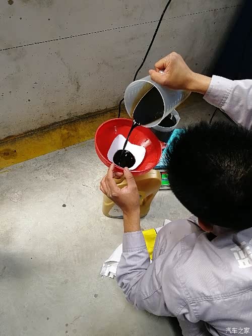 店里给我安排做了1000公里测量。首先用电子秤称了机油,重量记录下来,抱歉数据我没记住,然后加注给我的车,把两个机油口密封拍照备案,接着把我的公里表清零,叫我1000公里回来测量机油。