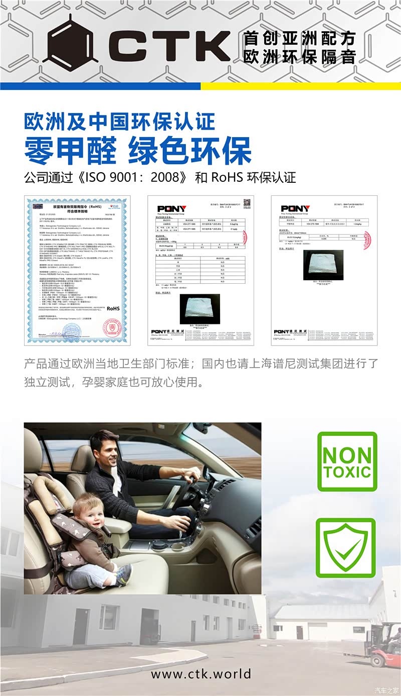 隔音材料的选用会直接影响到隔音的效果,技师为车主推荐的是欧洲环保隔音CTK,这款源自欧洲本土的品牌,在研发时充分考虑到了亚洲多变的环境特点,从而生产出了亚洲配方的隔音产品,这些产品也均通过了欧洲及中国环保认证,使用过程当中不会产生异味和对人体有害的气体。