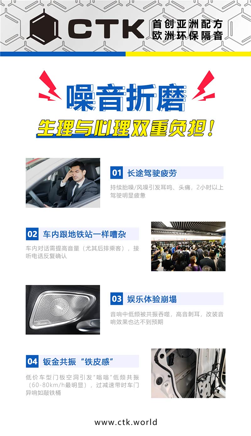 结语:改装技师工艺水平高超,细节处理到位,选用的又是隔音效果极为出众的欧洲环保隔音CTK,从而有效降低了汽车行驶过程当中的噪声,为车主创造了一个安静舒适的用车环境。
