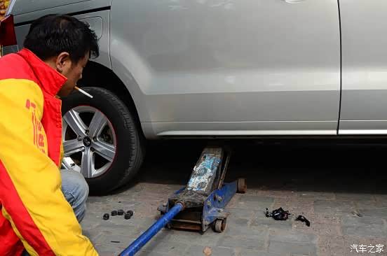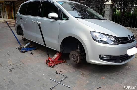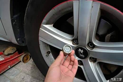 夏朗轮毂也是防盗螺丝,先用钩子给黑色保护盖取下,然后五颗螺丝中有一颗是防盗螺丝,必须要用到随车自带的防盗螺母套上去,才能取得下来。安全没的说!