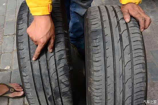 左边是前轮,右边是后轮,很明显左边的轮胎磨的更厉害,其实之前已经做过一次前后对调了。