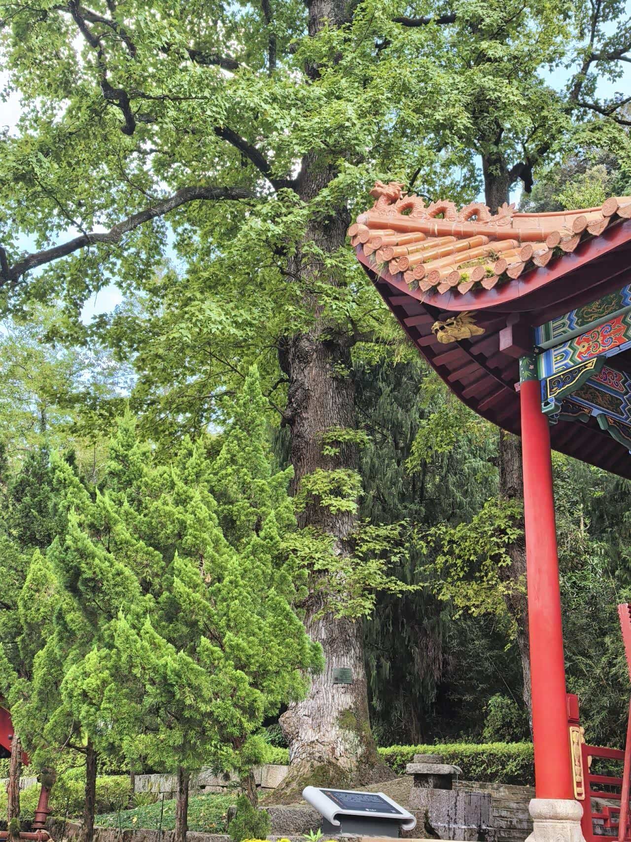 最后一站逛了舜帝陵,同样走一个半小时就够。进去之前还想着看看古建,结果发现基本都是新修的,不过藏在深山里的新房子,配着周围的树和山,看着倒也顺眼。景区里几棵古树长得有年头,站在旁边能感受到点年代感。