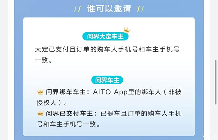 当然不是所有人都可以邀请你,必须是真正的问界车主,比如我!