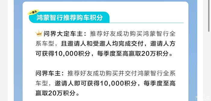 今年双十一你们有什么想买的车呀,有没有想入手问界的友友们呀!我今天给大家解读一下鸿蒙智行推荐官~感恩权益!简单来说就是为啥我们成为了野生销售!为啥可以老带新!