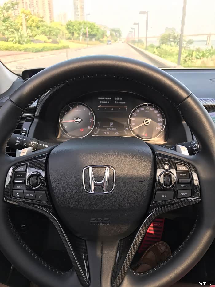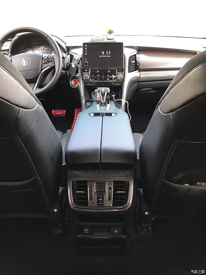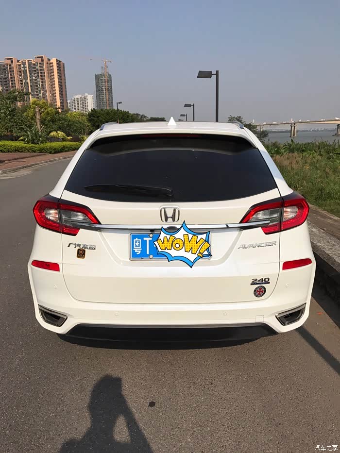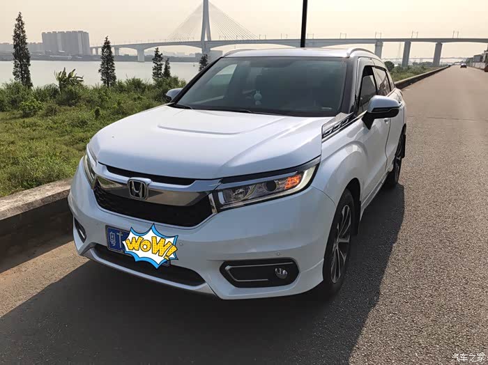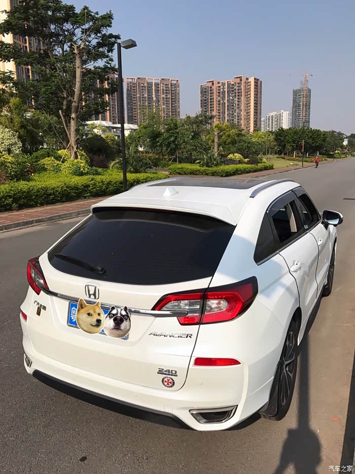 ,后来我有一次等红绿灯看到冠道实车,哇,这车好霸气啊,是叫冠道啊,真的跟图片很不一样呢,特别从侧面看,霸气霸气还是霸气,这是我对实车的第一个印象,跟图片上看截然不同,从此心里对它念念不忘,每天上论坛看车况。后来8月底我爸怂恿我换了一辆suv吧,28w左右的,我当即就想这价钱不就是240豪华版的落地价吗?当即拉上我爸直奔本田4s店,停在展厅中间的正是一辆240豪华版冠道,我爸看到车就说,这车好大啊,进了后排一坐,地板纯平无凸起,空间还大的离谱,我爸很喜欢。我拉销售坐下谈价钱,10分钟的时间价钱就谈好了,有现车,27.6全包落地,10天左右可以办好所有手续提车,送贴膜,地毯,挡泥板还有一次保养,这价钱符合心里预期。当即交了5000定金,签了合同就回家了,从进门看车到坐下来签合同不到半个小时。后两天把小花卖给亲戚后将原来的车牌号码保留下来,拿着保留车牌回执再去4s店验车交钱,赶紧上图