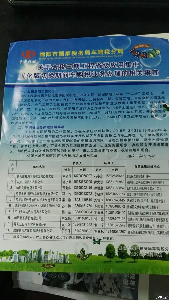 非常感谢同行朋友曾哥推荐,一起在他的销售陈经理那里订车,陈经理豪爽耿直,总共打过两个电话,见了一次面(订车当天),搞定。这里也一并感谢他。车子是7月9号下订单,25号生产完毕,通过陆运杭州--武汉,水运武汉---重庆,再次陆运重庆---绵阳。几经周转,终于在17号接到陈经理电话,车车已经到绵阳。因为有事,无奈推迟到22号才提的车。早上八点,带着两位老爸(自己老爸和LD老爸)打的前往4S店,够远,车费27元还是优步。为了提车,专门下载学习使用优步。