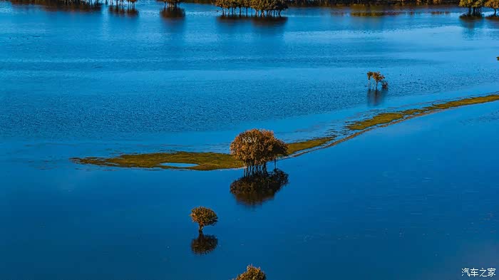 当我将焦距放大,神奇的画面出现了,我看到了那棵树!我甚至顾不上分辨她的树叶有多少种颜色,那些都已经不再重要了,她像是落入凡间的精灵,独自立于那一汪幽蓝之中,带着一股遗世独立的沉静与端庄,连水中都是她完美的镜像。哪怕周遭的灌木丛绚烂得如火如荼,我的眼里也只有她。如今,当我忆起额尔古纳那一望无际的湿地时,总会想起幽幽蓝调中的她,浪漫又神秘。