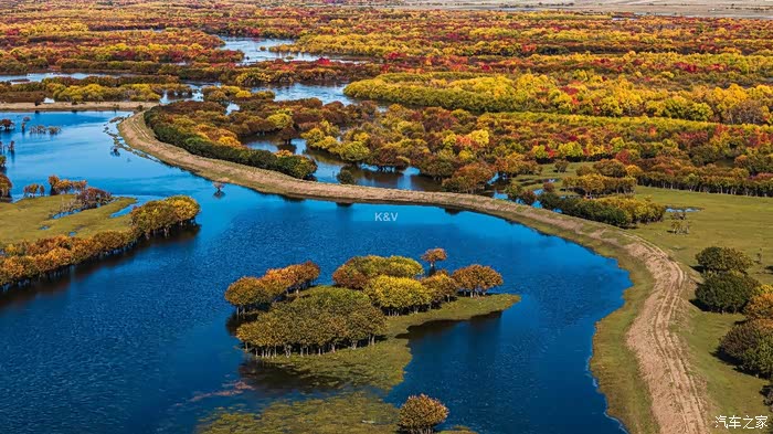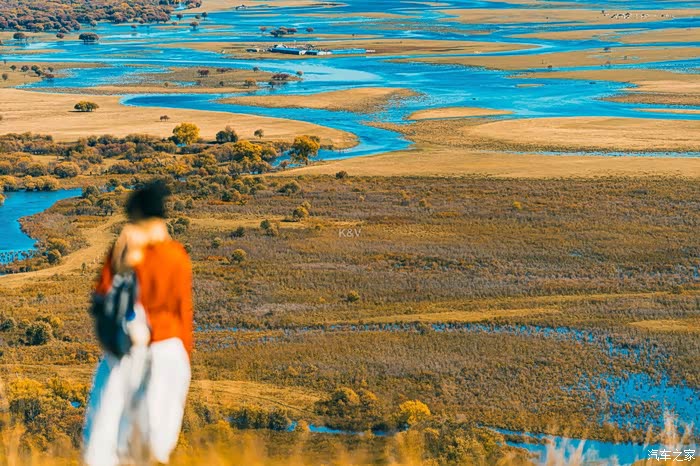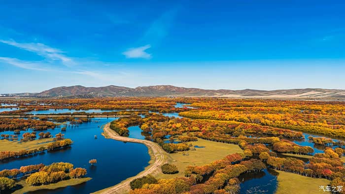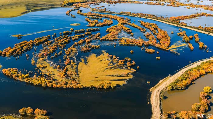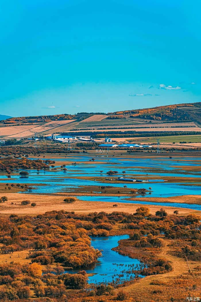 这一日的目的地是额尔古纳国家湿地公园,没想到刚从黑山头的民宿出发就让我们看到了惊艳的一幕:一大片湿地出现在我们的左手边,清晨的光线并不似午时那般放肆,阳光那完美的斜角带给这片大地无法言说的温柔与动人,天空如此的蓝,却仍比不过湿地中无数条蜿蜒曲折的河流,那般深邃静谧的蓝,只需一眼就会沉溺其中,就在这片幽蓝之中,分散着无数的灌木丛,从金黄过渡到橙色,那斑斓盛放的样子让我第一次感受到,大自然的美也可以像人一样,美的张扬外放,美的毫无掩饰,美的浑然天成,但是这种美丝毫没有攻击性,那是美而不自知,是纯真的剔透而不知其璀璨,是无知无觉中的绽放!