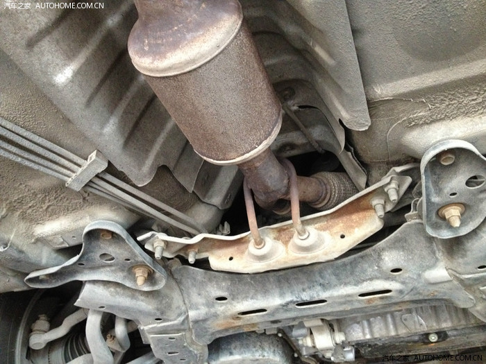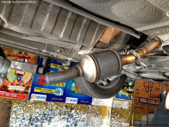 进入正题,我车是今年5月份开始逐渐发现在正常行驶至水温5格时(5格是09款的正常水温),一加油或者一松油门时,发动机就会出现像飞机发动机似的异响,冷车时没有这个问题。刚开始还怀疑是发动机护板共震引起的,但是护板卸下去后还是有那个异响。后来把车架起来检查,发现是底盘中间排气管也就是三元催化位置的异响,确认是三元催化装置损坏,没别的办法,只有更换。