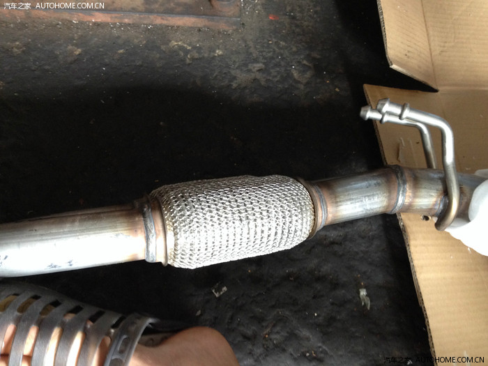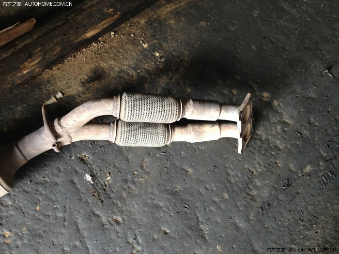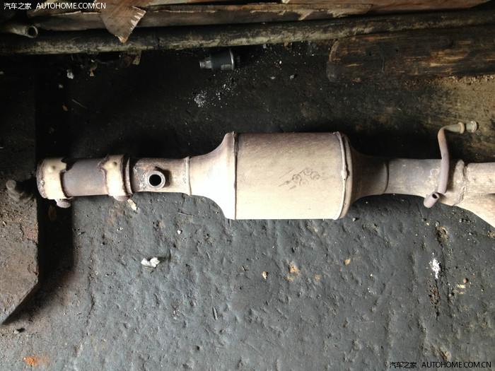 这是新的三元催化,感觉做工挺粗糙的,也许是在底盘下谁也看不到的缘故,反正不追求美观了。