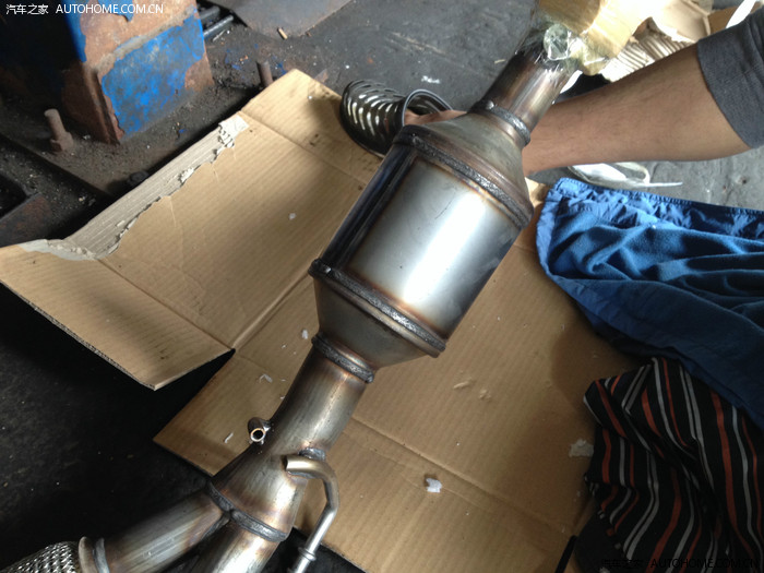 我是10年9月份的车,已经过保,这个东西只有自己掏钱更换了。联系了吉林的朋友,物流给我发过来一套原厂的三元催化。然后找了个修理厂的朋友,准备更换。