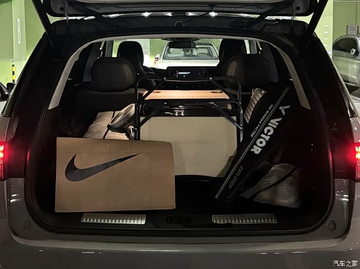 新车刚提回来就把装备搬进车里了,也是花了一些心思打理了一下,瞬间就有一丝小家的感觉,这车今后就是家用的主力了。买的是奢雅版 6座的,特地选了有空气悬挂的版本,让车子开起来操控好一点,也是为了让坐的人更舒服,当时试驾的时候看到这个空气悬挂在停好车之后能自动下降,想着让家里两个老人上下车更方便,更安全,也是直接决定选带这个配置的版本。奢雅和顶配的版本都是6座的,6座也很符合我的用车需求。第二排两个独立座位,平时两个老人坐着舒服,灵活性也更大。需要带孩子出门的时候就放上安全座椅,不像连排的座椅会占用旁边的空间,也不会影响旁边的人。最主要的是,随身的大件物品可以放中间的过道,实用性也是很高了。不过有点可惜的是,这车前排有座椅按摩,为什么第二排没有,买这个车的应该第二排坐的人身份更重要吧。新车照片放点,感觉这个灰色选的还是挺好看的,沉稳,低调,还有档次。