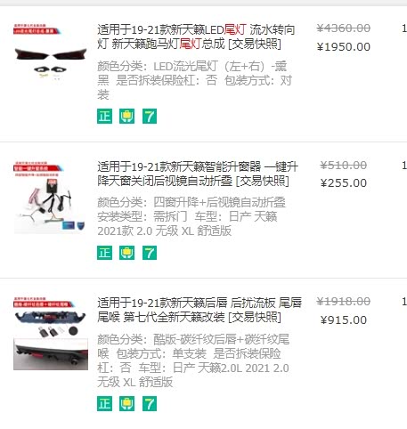 外观费用:前铲:158左右,尾灯:1950,尾喉+尾唇:915