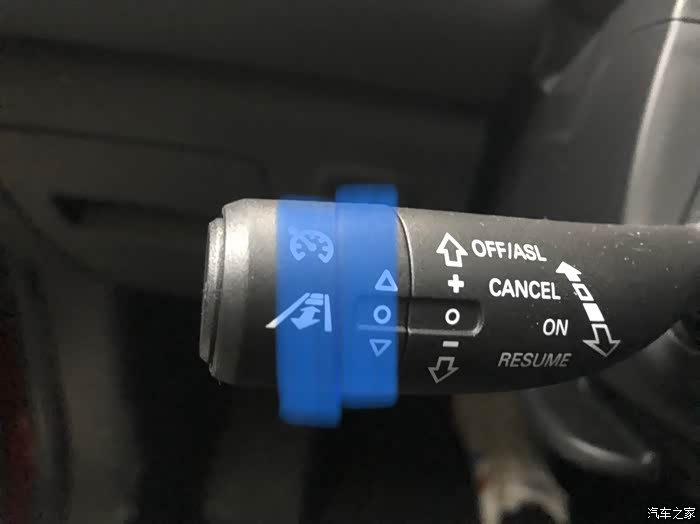 另外,转动自适应巡航拨杆端部的旋钮可以设置跟车距离,往上转跟车距离增大,往下转跟车距离减少,这也是区别于定速巡航的地方。
