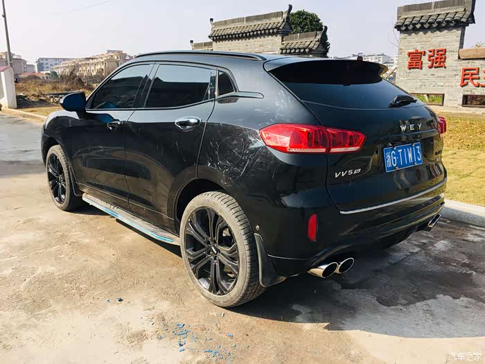 第一、(外观)WEY VV5的外观我是比较喜欢的,张扬的外形和起立的车标,长长的车头,犀利的车灯,扁低宽大的车身,超长的轴距,20寸的轮毂营造出来一种非常时尚、动感、大气的SUV。从入手到现在的一年多时间里,从别人问这是什么车到现在能一眼就能叫出它的名字,这是个很有意思的经历。