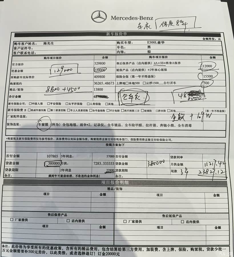 1、贷款落地48万整+两年利息2.28万,或者做奔驰金融的贷款,贷三年利息2.38万