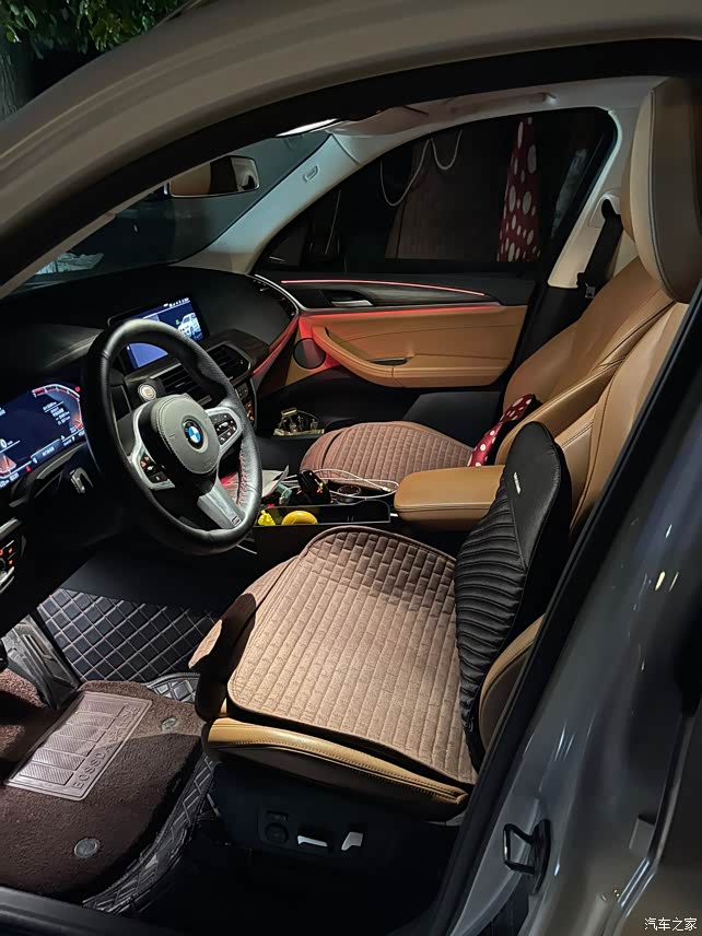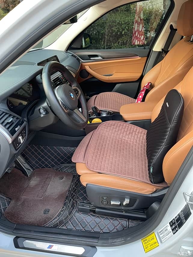 这时候迈腾凯美瑞不喜欢了,想搞个豪华品牌,过年回家有点面子,农村出来的嘛,就这点喜好,一开始看中了奥迪Q5 40tfsi 次低配,裸车价那时候33多,落地可以37以内,去4s店看外观看了好多次,试驾了两次,本来打算买的,于是上网查资料,听论坛上的说内饰丑,味道大,犹豫了。于是去看看宝马,一进4s店看上了宝马3系Gt,试驾了,底盘质感,动力比我的大众宝来优秀不少啊,准备买了,上论坛一看,说内饰有臭味,又犹豫了。这一下子迷茫了,奔驰去看了,感觉太贵外观不喜欢,不知道买什么车了,不知道怎么回事,突然看到x3了,仔细一看还挺喜欢,试驾了感觉还挺好,突然有一天销售打电话说有一辆干邑色内饰28i要不来看看,于是去看了,突然感觉这内饰比奥迪q5好不少,一问价格,裸车价38.8,贵了。马上过年了,着急买车,想了几天咬咬牙上吧。被坑的挺惨的,加装了麂皮顶 驱动力分配和悬浮轮毂标 多掏了1.5 算上利息,以及杂七杂八,落地价快47了,哎,没办法就喜欢这干邑色。