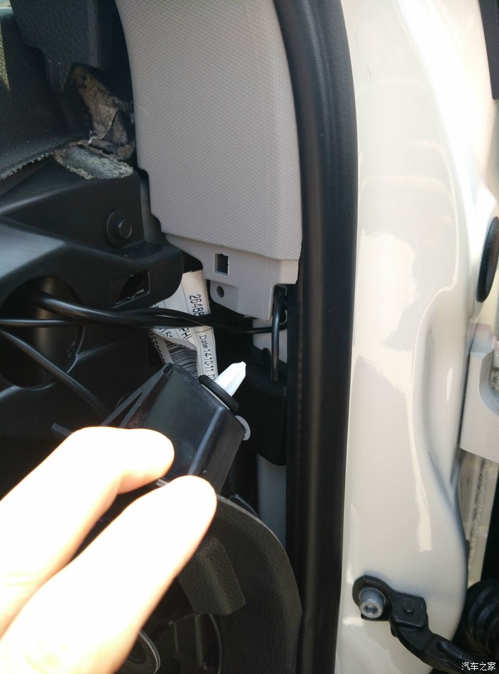 4S装的导航GPS位置太别扭,强迫症的我自己把它移到门栏去了,坛友指导的放上面A柱没搞定,不过还是非常感谢指导,自己也DIY了一把