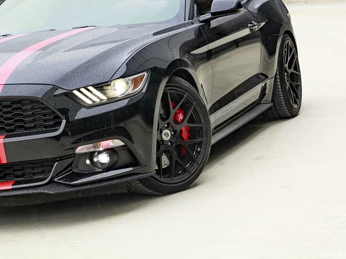 说起这套轮圈也算是个小插曲,之前本来是考虑HRE的,无论是款式还是价格都谈的差不多了,但是因为当时没有现货,说要等,但是其他的东西都搞好了,为了一套轮圈要继续等两三个月,并不是每个车主都那么有耐心的。刚好朋友给我推荐了MSE 这个牌子,因为他自己的车也装了一套这个牌子的轮圈,说MSE 跟HRE都是美国的锻造轮圈,相对比HRE较为高昂的价格,MSE会显得性价比更加高一些,然后被他各种安利之后,我就抱着试一试的态度订了一套MSE 的轮圈,刚好也有一套合适数据的轮圈,没过多久货就送过来了。没想到装车之后的效果大大的出乎我的意料,轮毂恰到好处的烘托出了野马的肌肉线条,如果轮辐的颜色再骚一点的话,相信视觉冲击效果会更大。