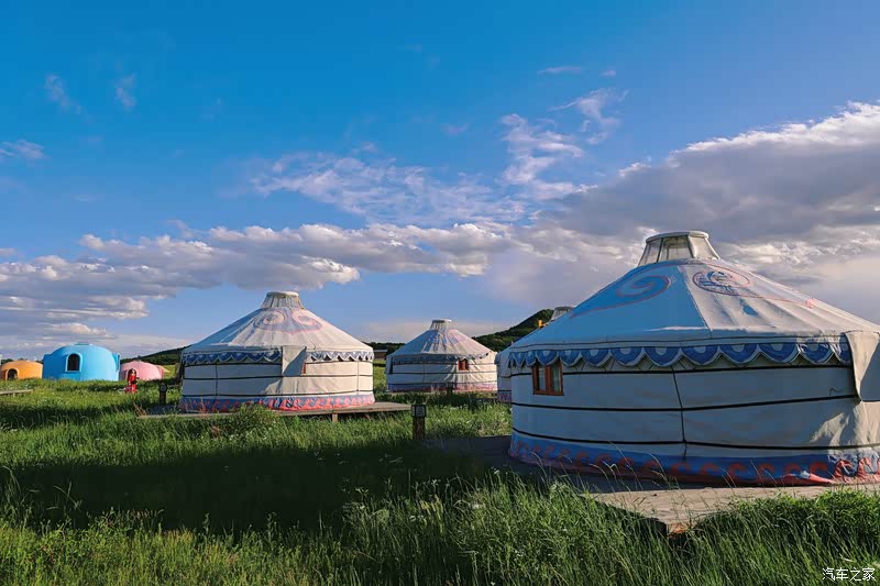 初到汗苏鲁,就被它丘陵起伏的欧式草原地貌所吸引。尤其是住宿区的五颜六色的彩虹房、充满地域特征的蒙古包、质朴的小木屋,以及为数不多白色露营帐篷,每一种都是那么的独特,也给了前来的游客更多的选择。