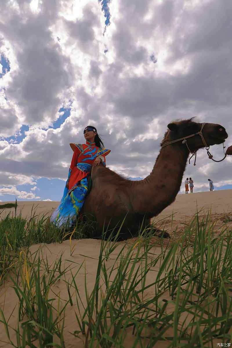 在骆驼骑乘区,女孩们纷纷换上景区提供的特色蒙古服装,与骆驼合影,并在工作人员的牵引下,骑着它在沙丘上走上一走,体会下沙漠骑乘的乐趣。