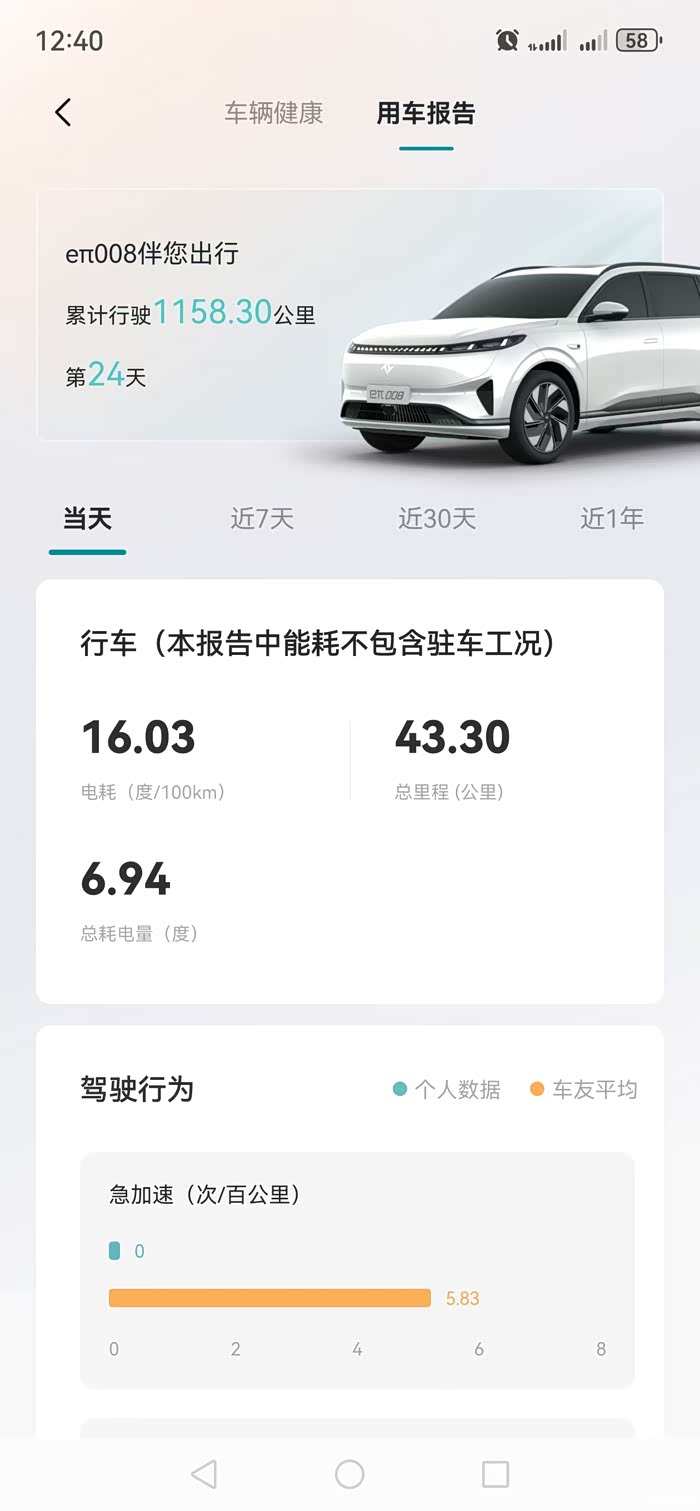 五、续航能耗:提车到现在大约三周时间,行驶了1000公里左右,大部分都是城市道路,还有小部分国道和高架。这么说吧,车的能耗还是取决于个人的驾驶习惯。温柔点开,最低我开到过13KW的电耗,天气不好或者激烈驾驶的时候能到18-19KW。我一直用的是舒适模式,还没尝试过运动(没有发挥场地),动能回收是弱(试过强和中,不是很适应,还是弱最舒服)。安了充电桩,一度电3毛5. 真省钱啊,5-6分钱一公里,这么大的车放以前想都不敢想。