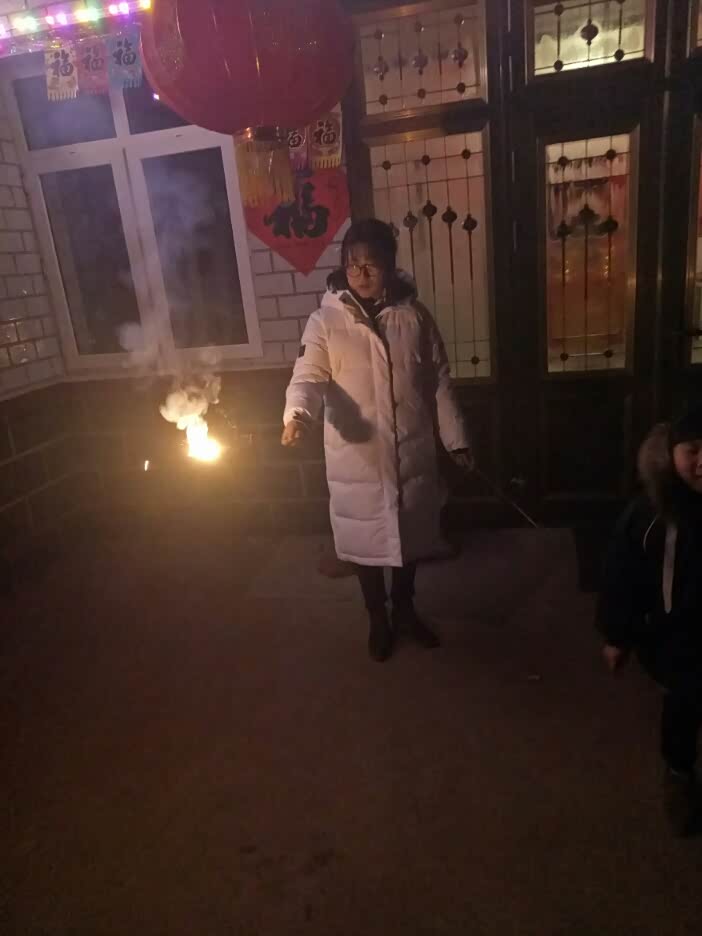 吃完中午饭我们就开始换新衣服各自都出去溜达。晚上看春晚半夜就开始放烟花。大年初一一早起来我们就开始去拜年。