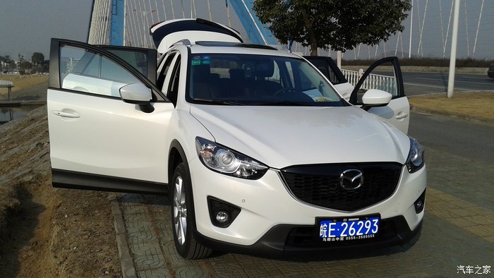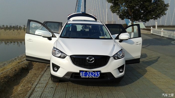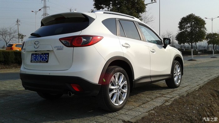 最后CX-5:刚上市的时候就看过这车,外形好看,油耗低,操控好,底盘高,安全配置厚道。就是他了,加上年底团购会价格优惠17000元,就下手了。