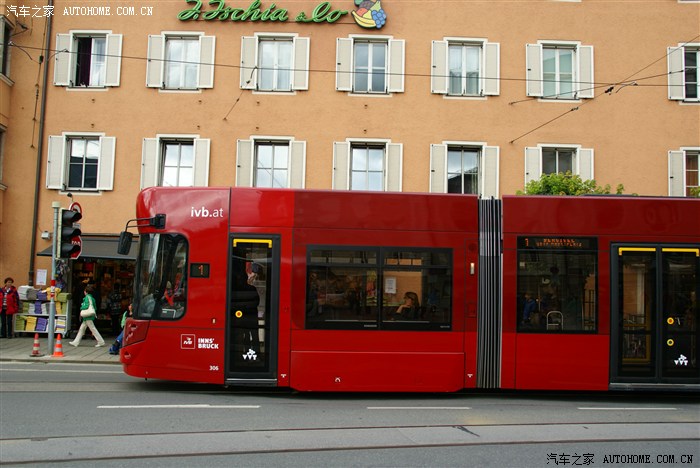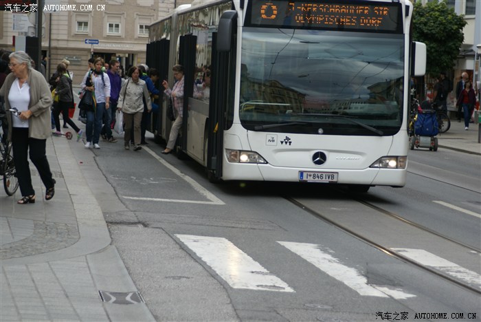 在奥地利小镇因斯布鲁克,看到公交车可以为上下车的乘客“俯身”,观察下面照片,车辆底盘右侧在车门开启时向地面下降,车门关闭后上升至原来高度。