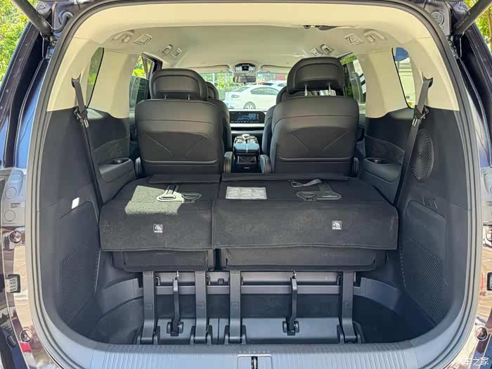 这车的后备箱空间也够用了,横着可以直接放儿童单车,出远门能装全家的行李。第三排还能四六比例折叠,灵活性比较高,当5座车、6座车用都可以,电动尾门开关也不费劲。
