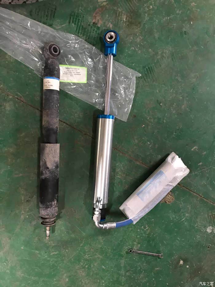 由于是镁铝合金,并不重,不到60斤,但是就是这60斤不到,把车头直接给压了下去!看着十分难受,起码压下去了一公分,就是因为原车减震太软,拉不住这护板。车的改装就是这样,牵一发动全身,后续改装不得不提上日程。原车护可以用 薄如纸片 形容,而且覆盖面积只有新护板的3分之一。于是联系了北京运良的朋友,直接订购了一套减震,后轮的弹簧和运良的后保险杠,以及运良的射灯,还有一套负值轮毂和百路ko2的at胎,前前后后一共16个大件,全部用物流发过来。运费就将近1000元!可想而知这批配件多重多大。