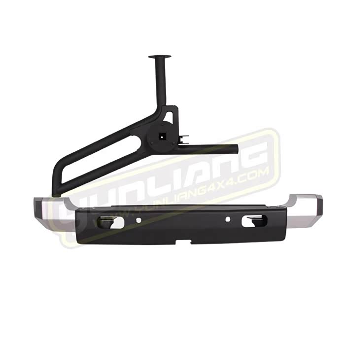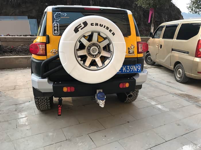 再说说后杠,后杠是运良自主设计的后杠,最大的好处是把备胎从车门上分离出来,把备胎承重转移到大梁上,彻底杜绝了越野中颠簸对车门的损坏,身边的霸道朋友有的长时间走烂路,备胎颠簸的把后备箱门都拉变形,打不开后备箱很尴尬。
