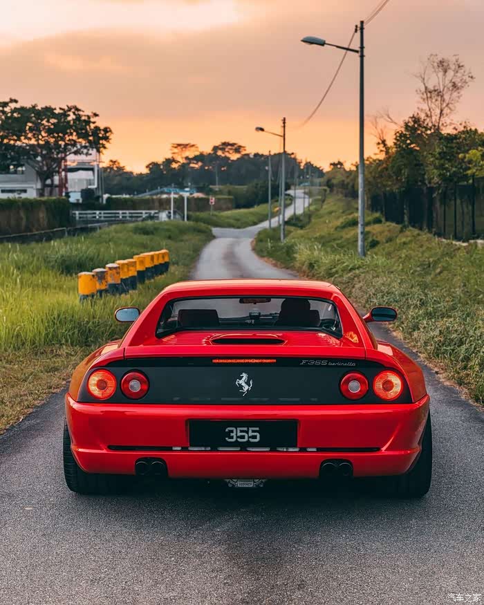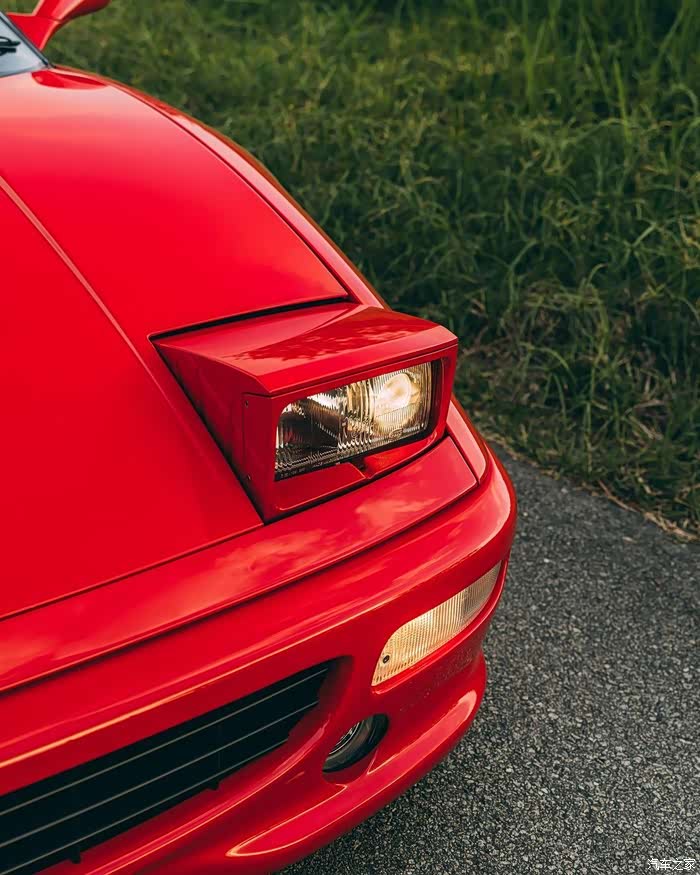 在小路里的法拉利,那骚红的外观设计真是迷人,那前车灯真是独特